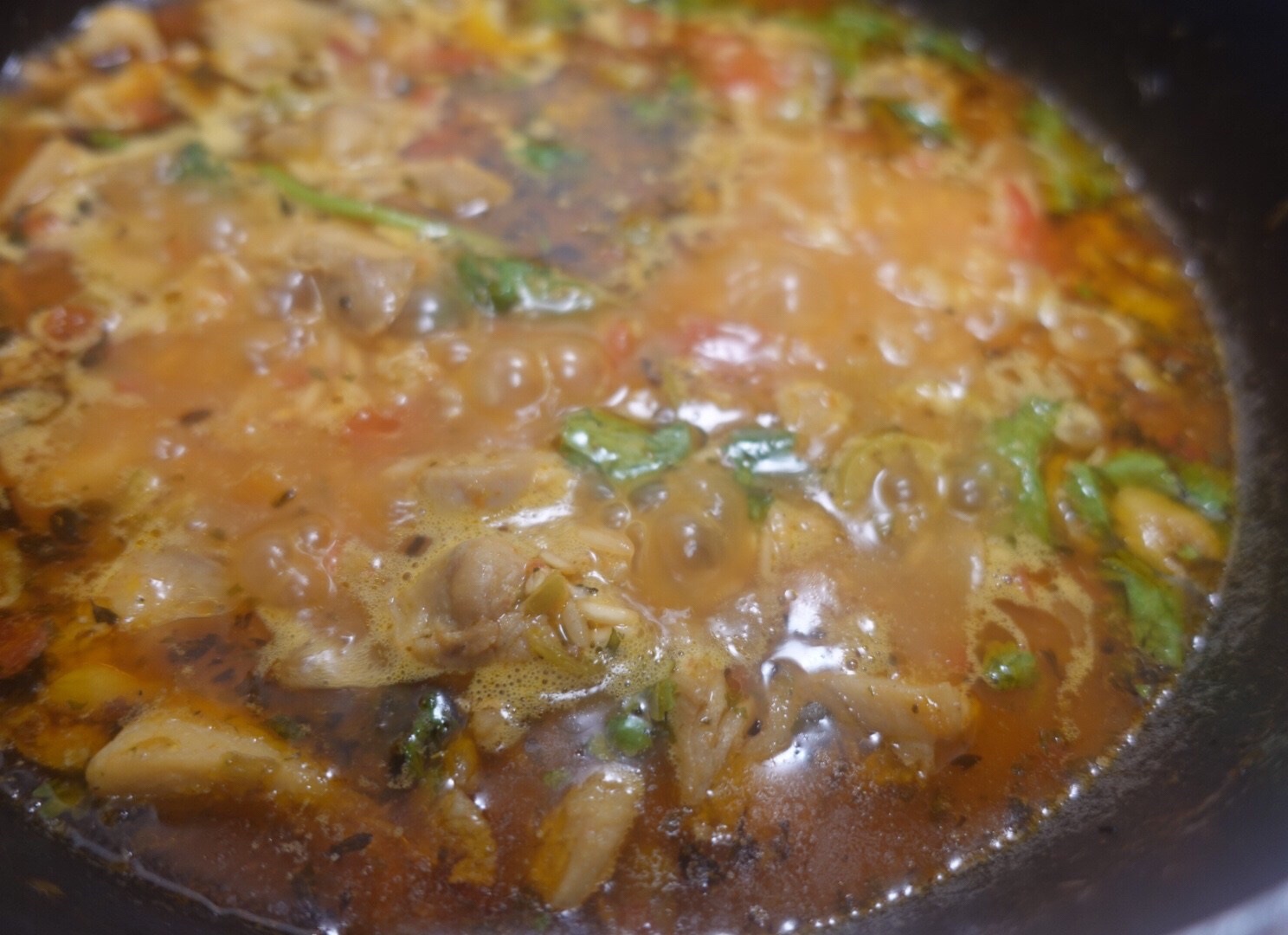 - In with the tomato sauce. Mix, mix, mix. Add your cumin and oregano. Mix. In go the beans. Mix. Add pumpkin, sausage, potato, cilantro, mix.