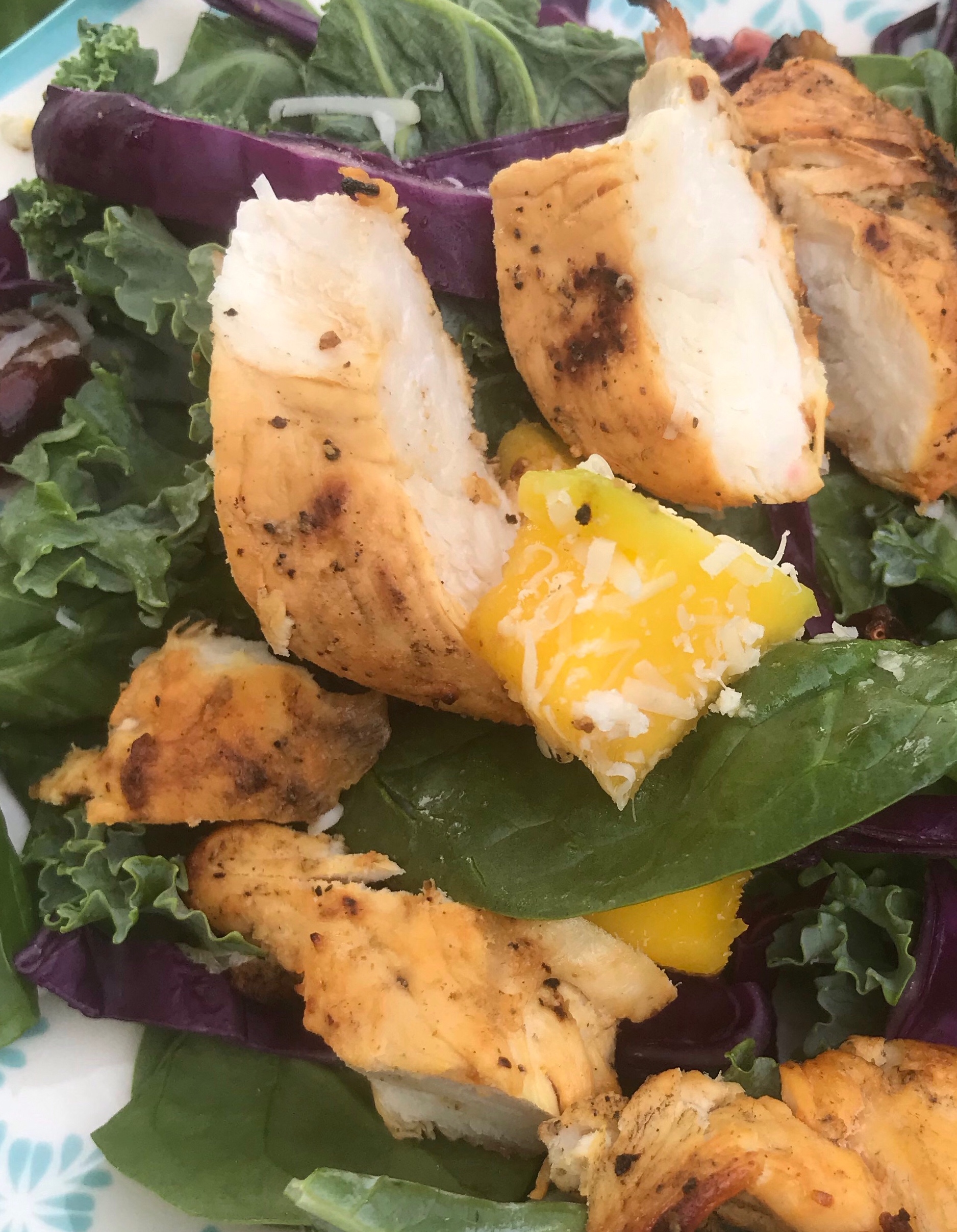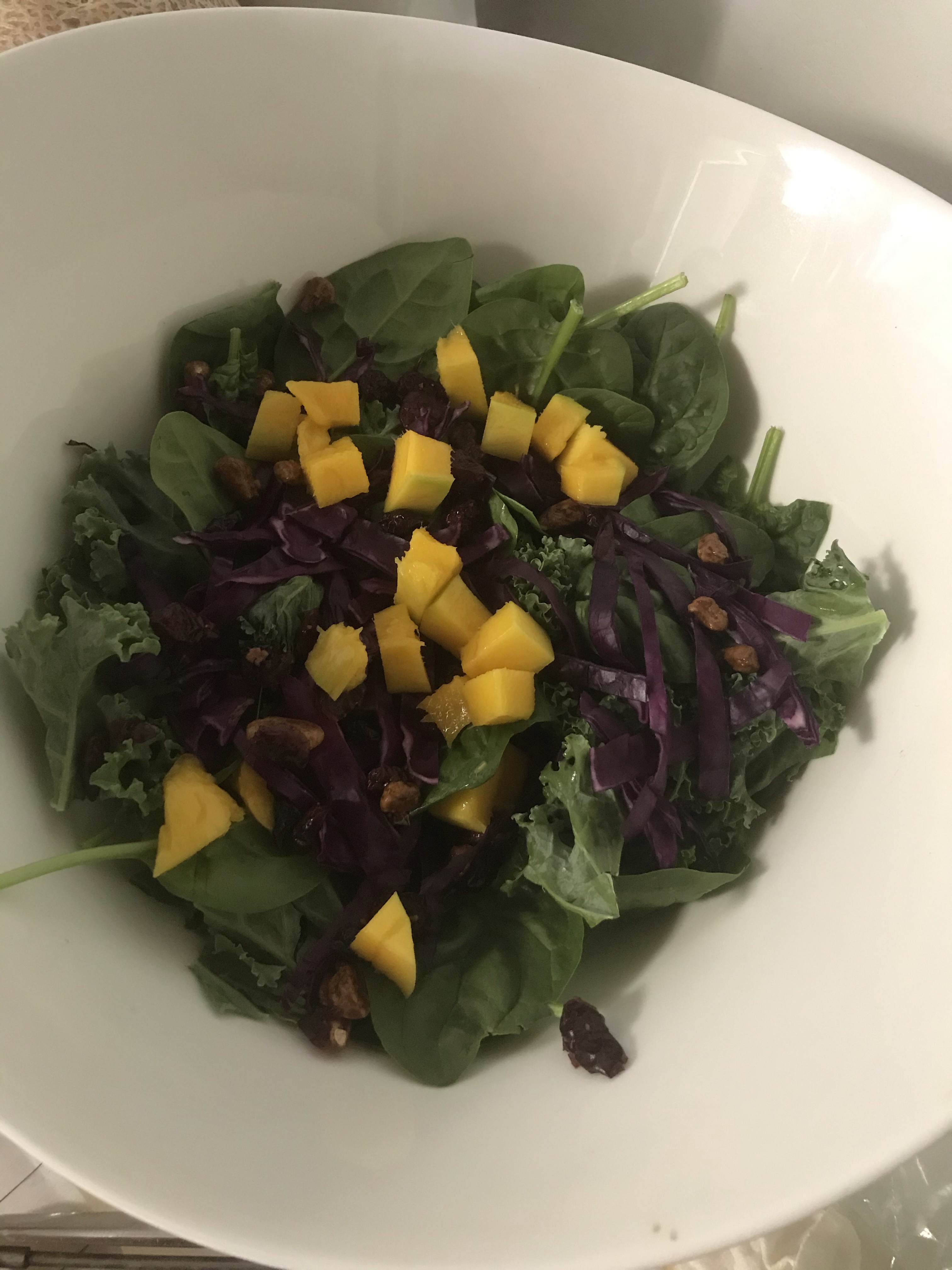- Top it off with what you like. I used pecans, cranberries, diced mangos, and fresh parmesan cheese.