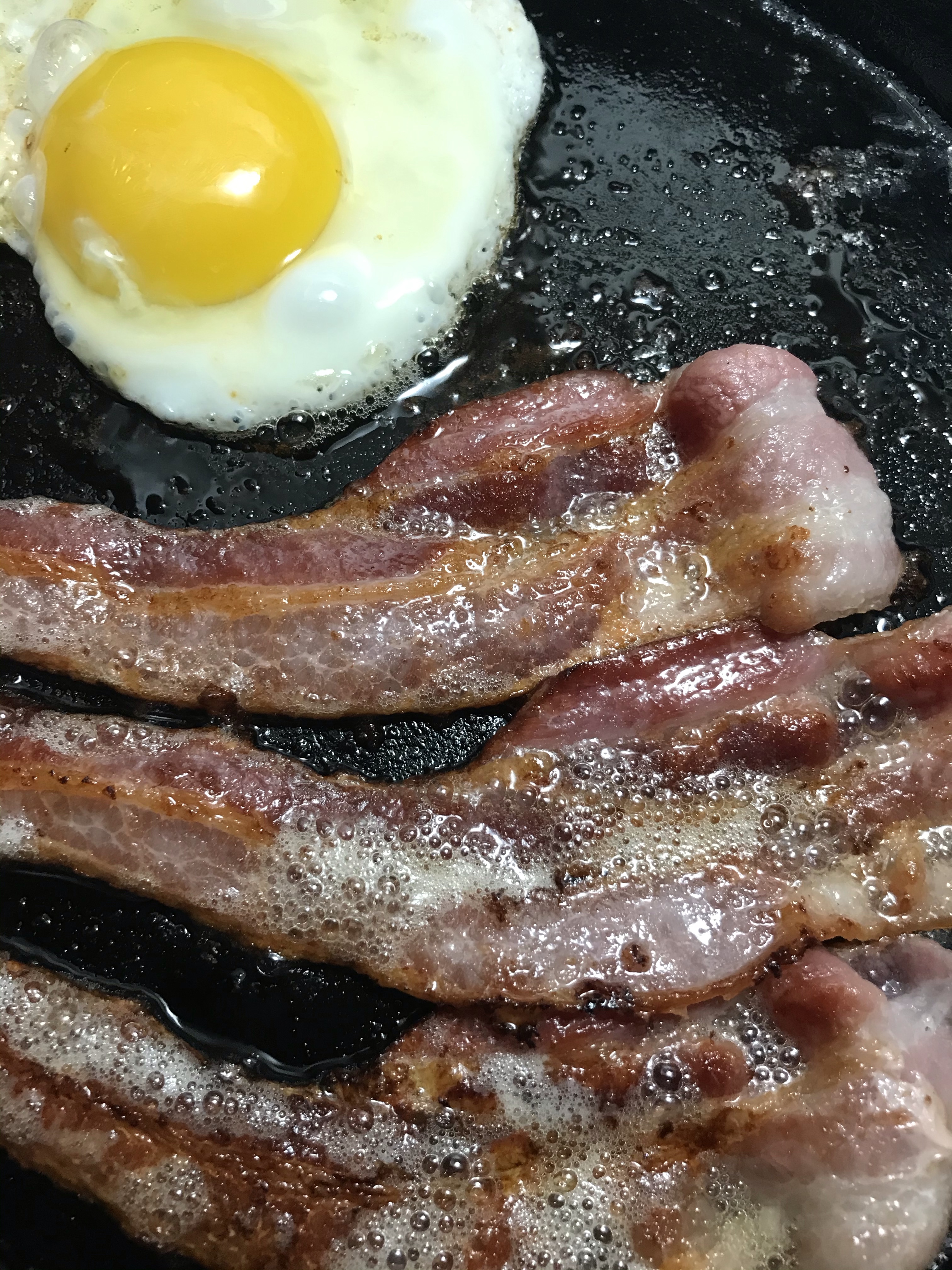 - Cook your bacon in your skillet (after your bacon is cooked, let it sit on paper towel to remove any extra grease)